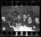 Residents sit around the table at a wedding reception in the ghetto
