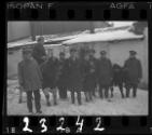 Workers of the Transport Department, standing with cows, in winter