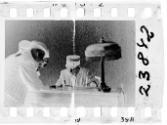 A Jewish policeman sitting at a desk, with another policeman and an unidentified man