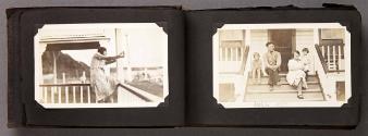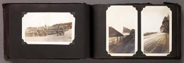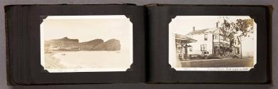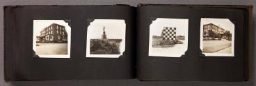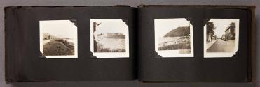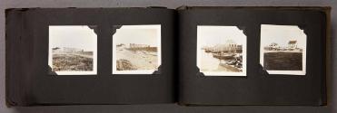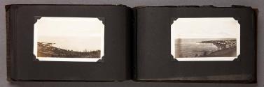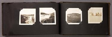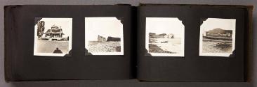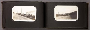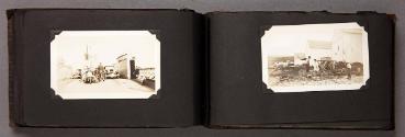 Mediumalbum: 124 gelatin silver prints and 1 litho. postcard in a black cloth covered album with black string binding
