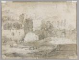 Recto: Trees on the Bank of a River with Two Travellers, a Castle on a Hill Beyond; Verso: The Ruin of a Castle by a Ford in a Hilly Landscape