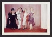 [Susanna and three friends in gowns on stage at Chevalier d'Eon, Hunter, NY]