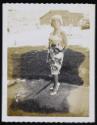 [Standing on the sidewalk in a patterned dress, Hunter, NY]