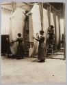 Aeroplane framing and building is now being taught at Ferndale-road School, Brixton. Women testing the various joints and screws for the aeroplane
