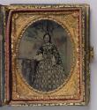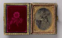 Mediumambrotype: quarter plate with applied colour, in leather and wood book-style case with mother of pearl inlay and gilt