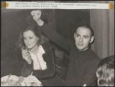 Pierre Clementi celebrates his freedom from prison and the courts in a restaurant in Rome. Pictured with actress Tamara Triffez