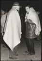 Two men wrap themselves in blankets on the street in the aftermath of an earthquake in Tuscany that left about 5,000 homeless