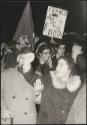 Protesters, including one holding a placard with an anti Franco slogan, at an anti fascist protest