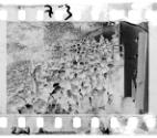Mordechai Chaim Rumkowksi, "Elder of the Jews" and Chairman of the Judenrat, speaks to a crowd, surrounded by ghetto police